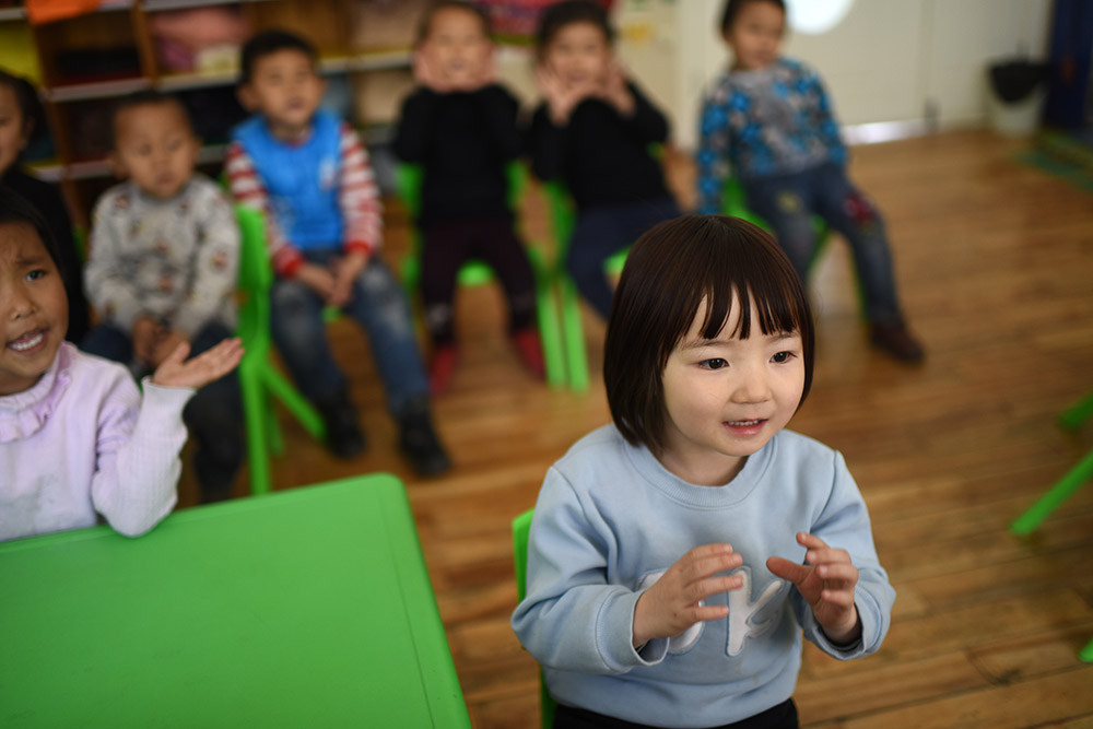 3月22日,青海省黃南藏族自治州幼兒園小班學生在上音樂課。 從2016年春季學期開始,青海省在海北、海南、黃南、果洛、玉樹五個藏族自治州及海西蒙古族藏族自治州實行包括學前三年、義務教育九年、高中及中職三年的15年免費教育,西寧市、海東市的貧困家庭學生也享受上述政策,首批惠及學生86.1萬名。 “十三五”期間,青海省還將以擴大教育資源、促進教育公平為重點,加快廣大牧區(qū)雙語幼兒園建設,同時進一步優(yōu)化中小學布局結(jié)構(gòu)。新華社記者 張宏祥 攝 -