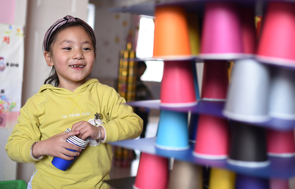 青海省黃南藏族自治州幼兒園大班學生白瑪蘭澤在做游戲(3月21日攝)。 從2016年春季學期開始,青海省在海北、海南、黃南、果洛、玉樹五個藏族自治州及海西蒙古族藏族自治州實行包括學前三年、義務教育九年、高中及中職三年的15年免費教育,西寧市、海東市的貧困家庭學生也享受上述政策,首批惠及學生86.1萬名。 “十三五”期間,青海省還將以擴大教育資源、促進教育公平為重點,加快廣大牧區(qū)雙語幼兒園建設,同時進一步優(yōu)化中小學布局結(jié)構(gòu)。新華社記者 張宏祥 攝
