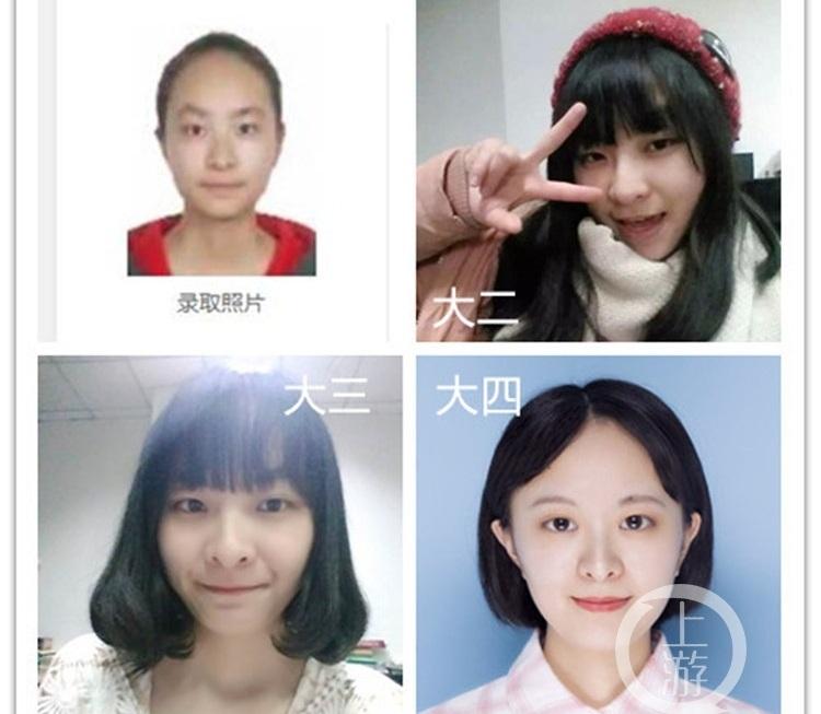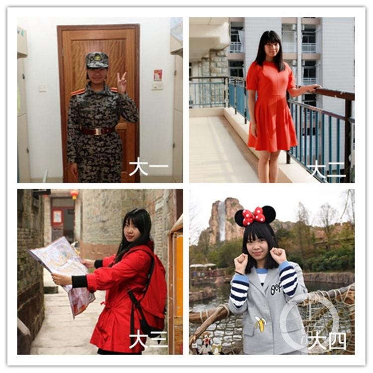 近日,重慶多所高校的畢業(yè)生,用四年的照片來記錄大學(xué)四年的成長痕跡,引發(fā)網(wǎng)友感嘆。圖為西南大學(xué)秦文琰,不僅樣貌如同換了個人一般,學(xué)習(xí)更進一步,現(xiàn)已保送到武漢大學(xué)新聞與傳播學(xué)院。 -