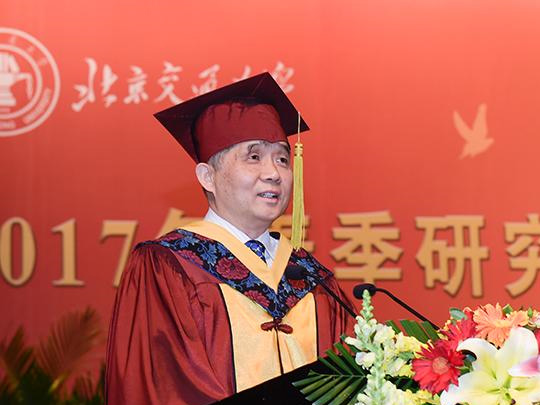 今天,對(duì)于北京交通大學(xué)和各位畢業(yè)生來(lái)講,都是一個(gè)值得紀(jì)念的日子!今天,北京交通大學(xué)2017屆的189位博士生、2115位碩士生即將走出校園,開(kāi)始人生新的旅程。在此,我謹(jǐn)代表北京交通大學(xué),向順利完成學(xué)業(yè)的畢業(yè)生同學(xué)們致以熱烈的祝賀,向長(zhǎng)期辛勤工作在研究生培養(yǎng)一線的各位老師致以衷心的感謝,向辛勤培育你們的父母、親人致以崇高的敬意!