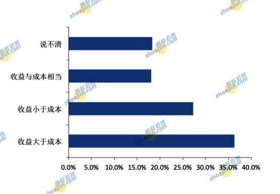 調查發(fā)現(xiàn),海歸群體對留學效益價值持肯定態(tài)度。認為收益大于成本的占36.3%,認為收益成本相當?shù)恼?8.1%,認為收益小于成本的占27.3%,說不清的占18.3%。