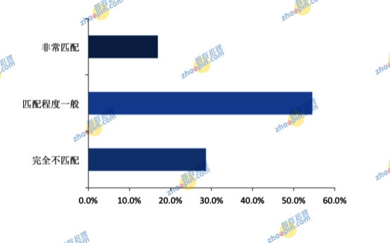 進一步調查發(fā)現(xiàn),海歸群體對當前工作崗位與其海外所學專業(yè)的匹配度偏低,認為非常匹配的僅為16.9%,認為匹配程度一般的為54.5%,認為完全不匹配的占28.6%。根據(jù)智聯(lián)招聘此前發(fā)布的《2017年大學生求職指南》數(shù)據(jù)來看,有38.5%的國內大學生存在與專業(yè)不對口的情況?磥,不論是國內的大學生,還是海歸群體,均存在專業(yè)不對口的情況。