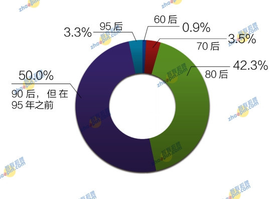 年齡方面,以80后和90后海歸為主,其中,80后海歸占比42.3%,90后海歸占比為53.3%,經過細分發(fā)現(xiàn),90-95年之間的海歸占比為50.0%,95后僅占3.3%。70后、60后海歸占比較少,分別為3.5%、0.9%。