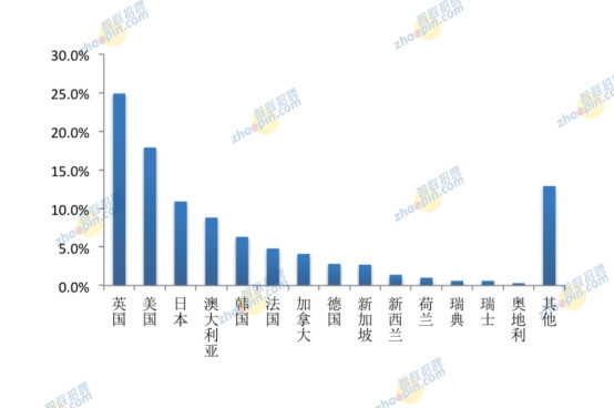 在最近一次的留學國家分布比例來看,英國、美國、日本、澳大利亞、韓國位列前五名,占比分別為24.9%、17.9%、10.9%。8.8%、6.3%,以上國家是我國留學生的主要目的地國,擁有全球優(yōu)質教育資源。法國和加拿大的占比也均超過4%。其他國家占比均低于3%。