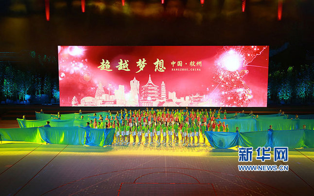 新華網(wǎng)杭州9月4日電 3日晚,第十三屆全國學生運動會在杭州黃龍體育館拉開帷幕。