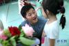 在幼兒園畢業(yè)典禮結(jié)束后,一名孩子抱著張鳴川不肯撒手(6月30日攝)。新華社記者 張玉薇 攝 -
