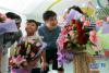 剛剛從幼兒園畢業(yè)的孩子們回來看望張鳴川(右二)和他的同事們(9月8日攝)。新華社記者 張玉薇 攝 -