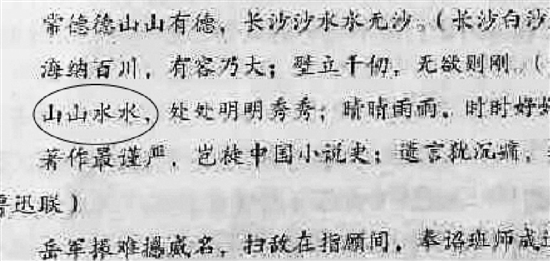 史老師說,在教學過程中,并未發(fā)現“水水山山”被誤寫了!捌鋵,像這種瑕疵,如果沒有專業(yè)功底是很難發(fā)現的。”