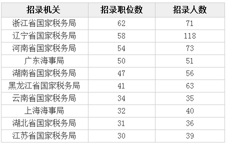 無人報考職位最多十大部門國稅占據(jù)八席
