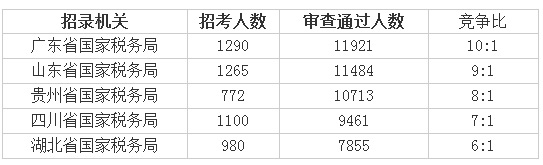 從近幾年國(guó)稅招錄情況來(lái)看,國(guó)稅系統(tǒng)歷來(lái)是“招錄大戶”,今年也不例外,目前通過(guò)審核人數(shù)過(guò)萬(wàn)的部門已有三個(gè),這三個(gè)部門同時(shí)也是競(jìng)爭(zhēng)最激烈部門,最難考的部門。