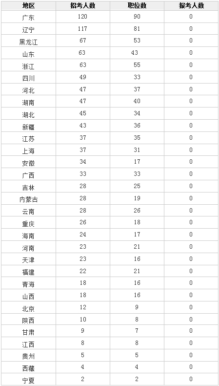 從目前各省無人報考職位來看,廣東、遼寧、黑龍江、山東、浙江等地的無人報考職位占據(jù)前五名,這五個省份無人報考職位數(shù)占整體數(shù)量的37.8%。