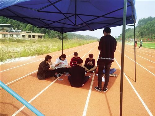 食堂里人太多,部分學(xué)生干脆打包飯菜到球場(chǎng)吃