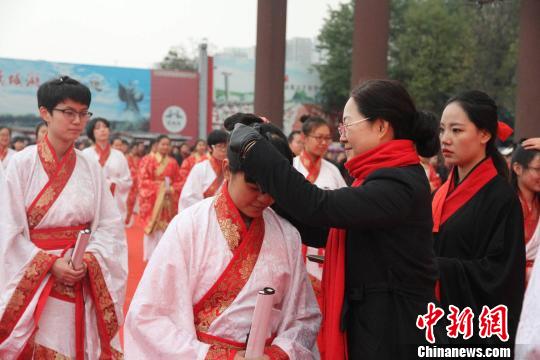 漢族自古就有成人禮儀,是漢民族重要的人文遺產(chǎn)。漢代的“冠禮”和“笄禮”更是華夏禮儀的起點。為了弘揚中華優(yōu)秀的傳統(tǒng)文化,助力漢文化復興,景區(qū)為學子們還原了一場原汁原味的漢式禮儀。