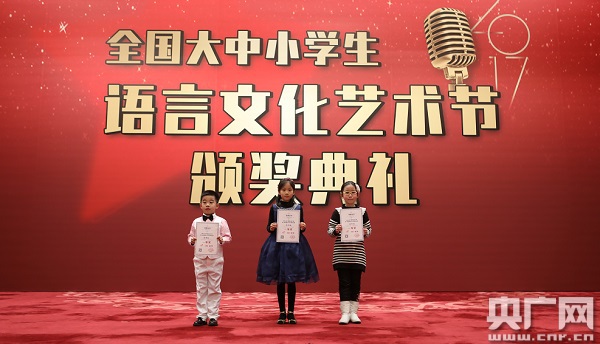 圖為中小學(xué)生演講比賽優(yōu)秀選手接受頒獎(jiǎng) 央廣網(wǎng)記者王永康攝