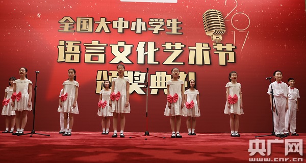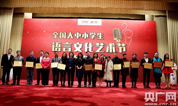 央廣網(wǎng)北京12月10日消息 (記者 王子衿 方婧)言語氤氳,宛轉(zhuǎn)悠揚(yáng)的華夏文化歷久彌堅(jiān);辭藻斐然,亙古不變的文化情懷生生不息。2017年12月10日,中央人民廣播電臺央廣網(wǎng)第一屆“全國大中小學(xué)生語言文化藝術(shù)節(jié)”(以下簡稱“語藝節(jié)”)頒獎(jiǎng)典禮在人民大會(huì)堂舉行。