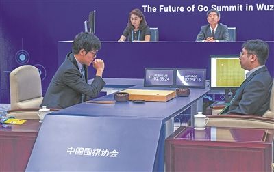 中國(guó)棋手柯潔九段和圍棋人工智能程序“阿爾法狗”對(duì)決。(新華社發(fā))