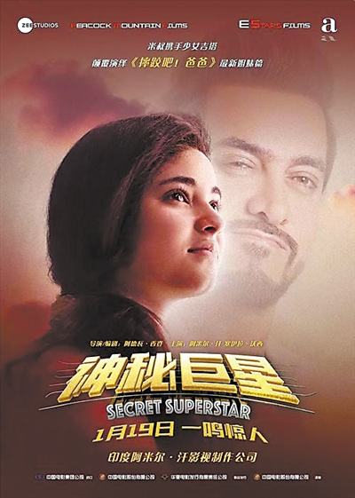 另一部電影《神秘巨星》同樣是一部以孩子為主角的電影,講述了14歲的印度少女尹希婭(塞伊拉·沃西飾)熱愛唱歌,卻受到父親的極力阻撓,在母親的啟發(fā)后,她蒙面拍攝自彈自唱原創(chuàng)歌曲的視頻上傳到網(wǎng)上。憑借天籟歌喉在網(wǎng)上一炮而紅,并收到了備受爭議的音樂人夏克提·庫馬爾(阿米爾·汗飾)拋出合作的橄欖枝,生活由此發(fā)生了翻天覆地的變化。