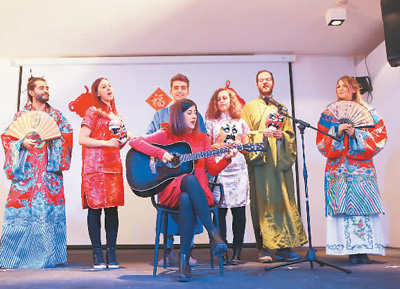 意大利那不勒斯東方大學(xué)孔子學(xué)院組織迎新春活動,低年級學(xué)生唱跳《新年好》。