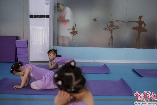 舞蹈課上,等候的家長從玻璃墻縫隙向教室內(nèi)張望。