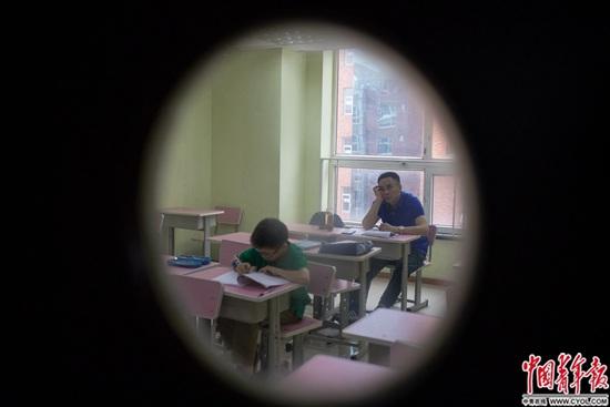 奧數(shù)一對一輔導(dǎo)班上,一位家長坐在教室的后排。