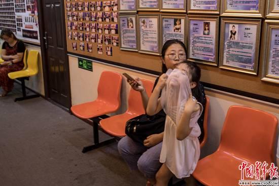 大廈五樓離廁所不遠(yuǎn)的20平方米小屋里,擺了兩排醫(yī)院里常見的鍍鉻椅子,上面坐滿了等待的家長。他們大多低頭看手機(jī),很少交談。相鄰的鋼琴培訓(xùn)班走廊墻上,屏幕上滾動播放小學(xué)員的比賽視頻和名師介紹。在同一層的一家舞蹈學(xué)校前臺,有家長已經(jīng)掏出手機(jī),掃二維碼續(xù)交了下一季度的學(xué)費(fèi)。