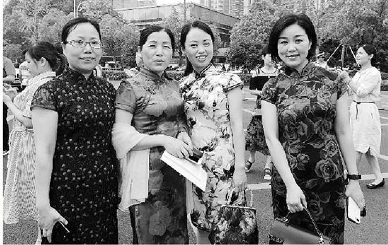 杭二中濱江校區(qū)一些學生家長不約而同穿起旗袍。