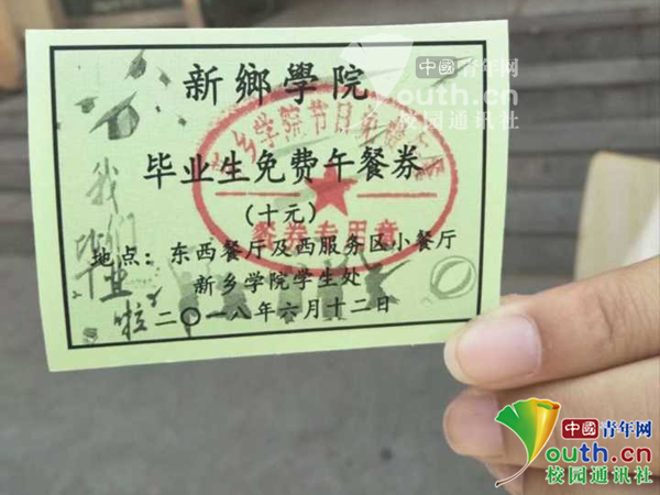 圖為畢業(yè)生展示所領(lǐng)餐券。新鄉(xiāng)學(xué)院記者團 供圖
