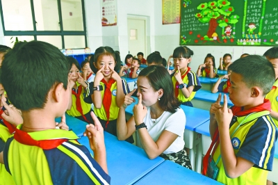 29日,貴州省仁懷市鹽津小學(xué)學(xué)生在老師帶領(lǐng)下做眼保健操 新華社發(fā)