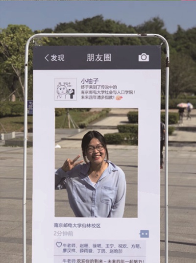 南京郵電大學為新生準備的拍照框。南京郵電大學 楊澤勛/攝