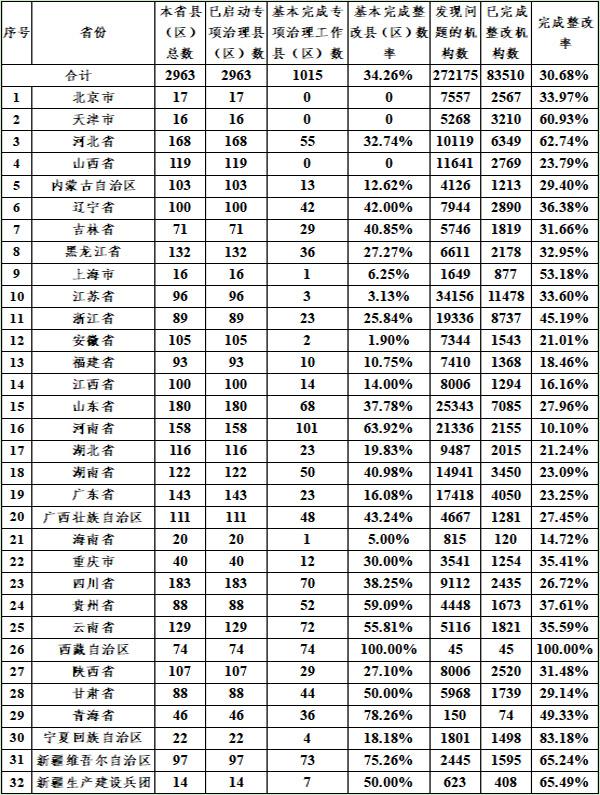日前,教育部辦公廳印發(fā)《關(guān)于全國校外培訓(xùn)機(jī)構(gòu)專項(xiàng)治理行動(dòng)整改工作進(jìn)展情況的通報(bào)》,截至2018年10月15日,全國共摸排校外培訓(xùn)機(jī)構(gòu)400532所,存在問題機(jī)構(gòu)272175所,現(xiàn)已完成整改83510所,完成整改率30.68% 。黑龍江省發(fā)現(xiàn)問題的機(jī)構(gòu)數(shù)有6611所,已整改2178所,完成整改率達(dá)32.95%。