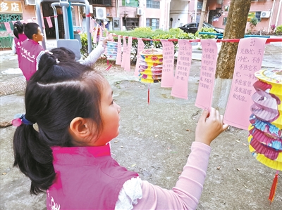 南坑社區(qū)“快樂四點(diǎn)半”課堂元宵節(jié)組織孩子猜燈謎活動。