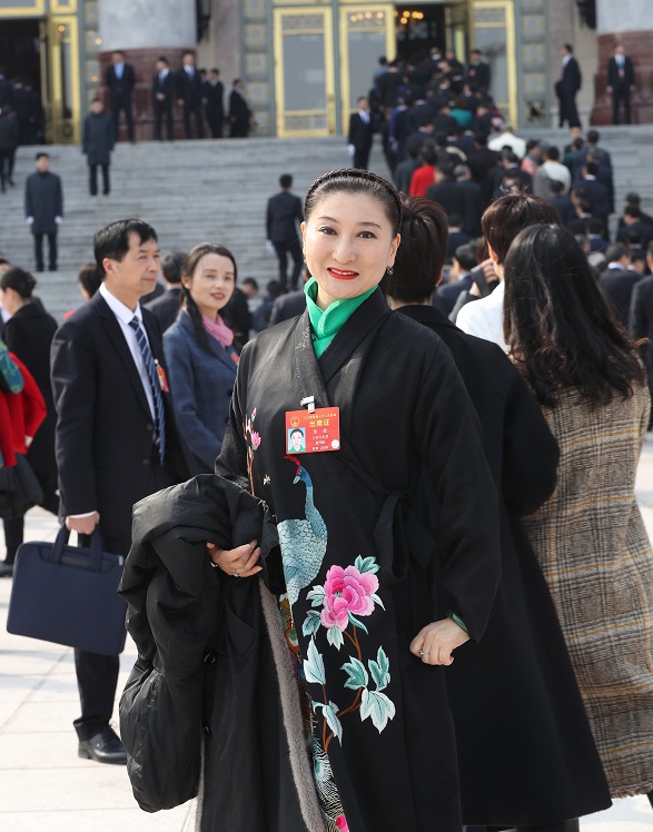 全國(guó)人大代表、淮劇演員陳澄在人民大會(huì)堂前。(受訪者本人供圖)