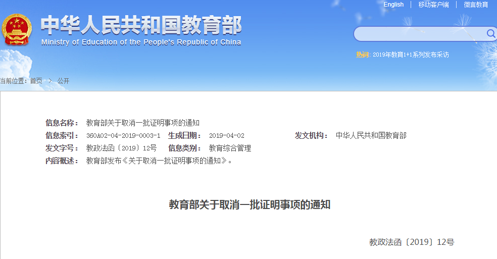 據(jù)教育部網(wǎng)站獲悉,為減證便民,辦好人民滿意的教育,教育部公布取消一批證明事項(xiàng),即部門規(guī)章設(shè)定的10項(xiàng)證明事項(xiàng)、部門規(guī)范性文件設(shè)定的12項(xiàng)證明事項(xiàng),以及無(wú)明文規(guī)定但在部分地區(qū)或?qū)W校實(shí)施的7項(xiàng)證明事項(xiàng)。