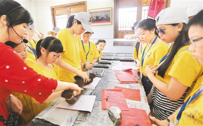 華裔青少年體驗(yàn)活字印刷,7月8日至7月26日,來自意大利、法國、荷蘭、美國等7個(gè)國家的近百名華裔青少年,在浙江省瑞安市參加以中文學(xué)習(xí)為主,輔有國畫、書法等傳統(tǒng)文化課程的2019年“中國尋根之旅”夏令營。