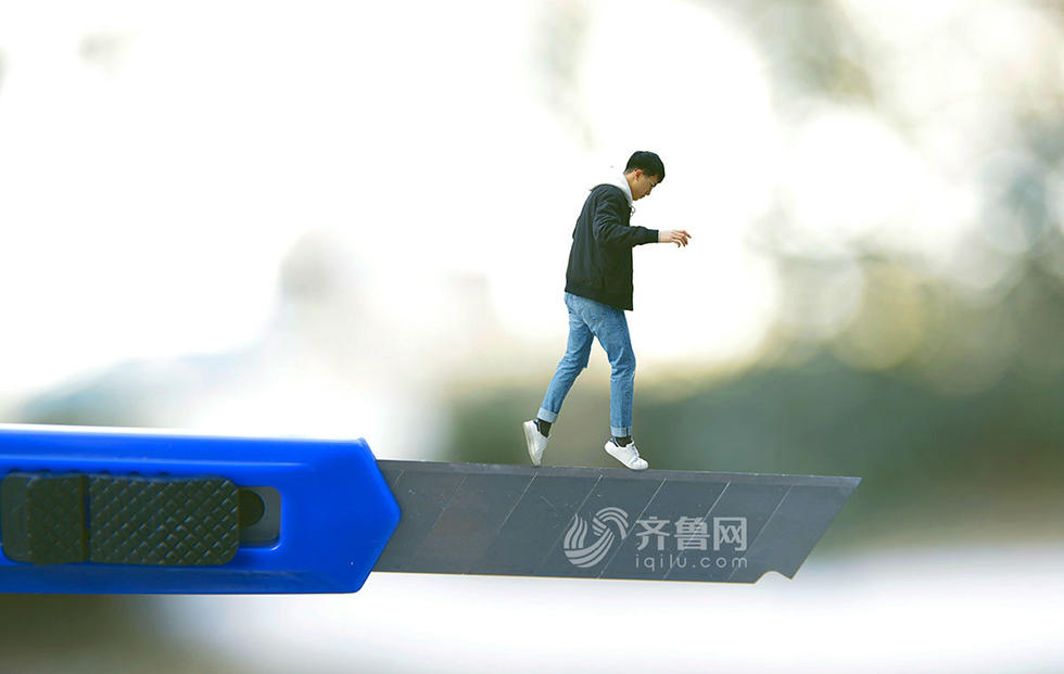 創(chuàng)意攝影展示初入職場大學生 刀刃行走