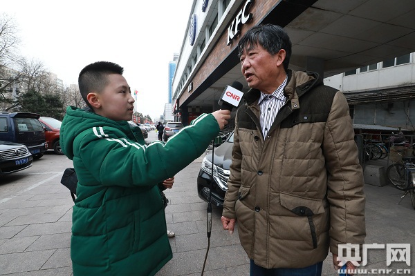 “小記者”進行實戰(zhàn)街采,“您好,我是央廣網(wǎng)兩會小記者,我想問您一個問題可以嗎?”這是“小記者”們的開場白。(攝影/李雪南) -
