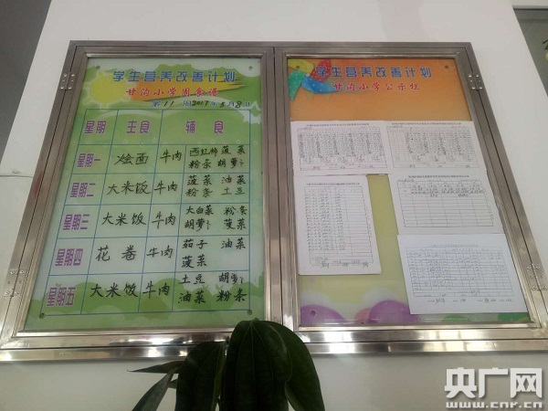 甘溝小學(xué)的營養(yǎng)午餐食譜 攝/記者 王啟慧