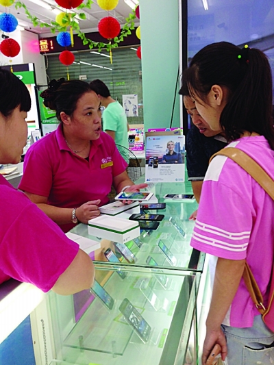 家長們帶著孩子在選購手機(jī)。季娜娜 攝