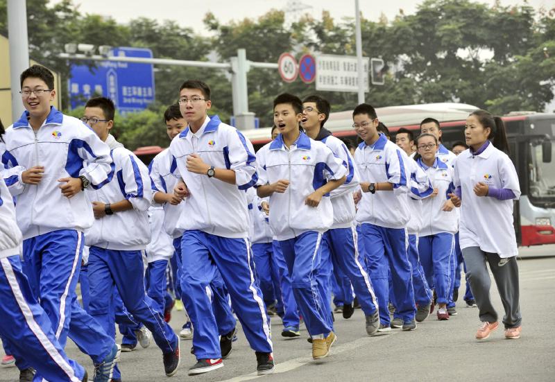10月14日,成都七中萬達(dá)學(xué)校實行三年跑六百公里才能畢業(yè),現(xiàn)場學(xué)生開始長跑。