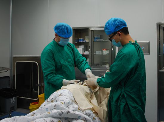 楊明章與助手正在進(jìn)行手術(shù)