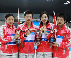 中國(guó)體壇的“常勝之師”乒乓球隊(duì)一向是中國(guó)軍團(tuán)在奧運(yùn)會(huì)上最穩(wěn)定的金牌來源。此役兵發(fā)倫敦,雖然遭遇“先單打、后雙打”的不利賽制,但中國(guó)隊(duì)的信心卻并未受到影響。正如領(lǐng)隊(duì)黃飚此前所言:“能拿多少(金牌),就要拿多少!庇捎谡w實(shí)力超群,“世界打中國(guó)”的格局恐怕不會(huì)在本屆奧運(yùn)會(huì)上發(fā)生改變,因此男團(tuán)、女團(tuán)金牌事實(shí)上已經(jīng)基本被中國(guó)隊(duì)提前鎖定。
