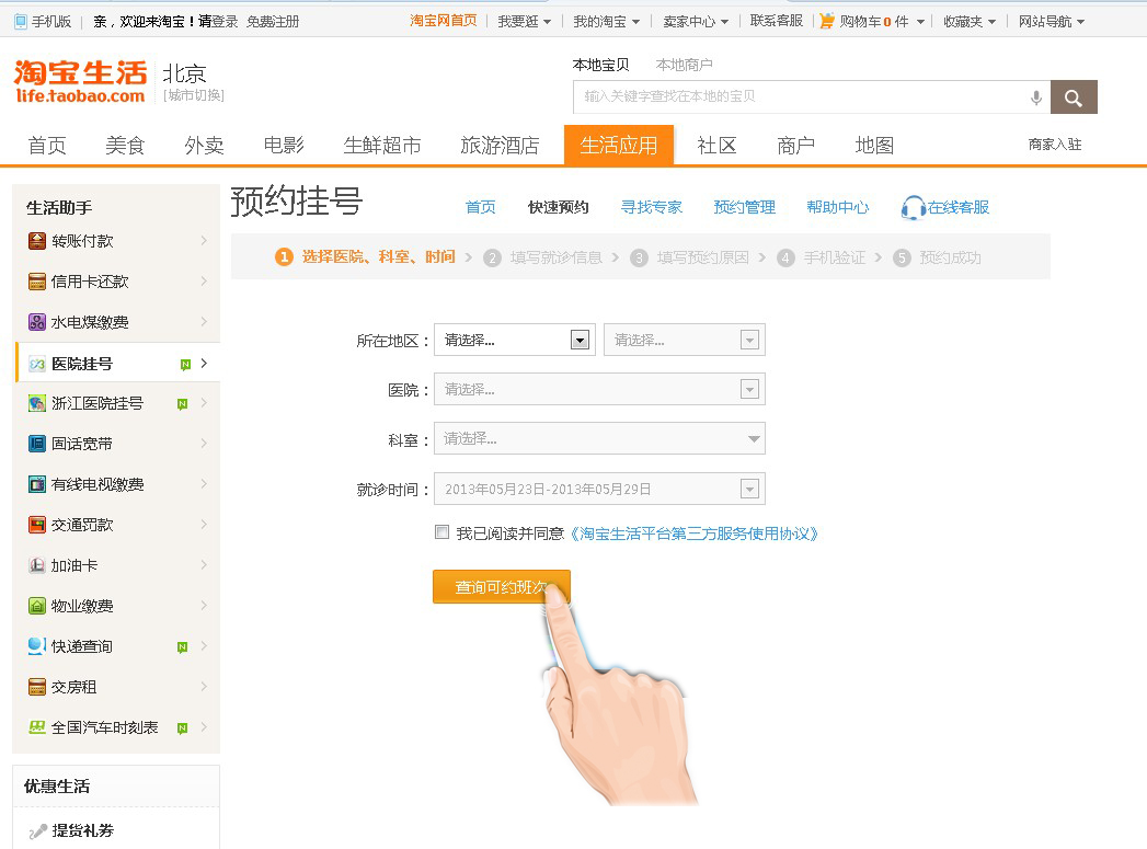 如果能夠在加上通過網(wǎng)絡(luò)預(yù)約掛號,是不是會覺得幸福感增加很多呢?據(jù)報道,現(xiàn)在全國18個省市的7萬名專家已經(jīng)開通網(wǎng)上預(yù)約服務(wù),其中超過6成為三甲醫(yī)院。您只要上上淘寶,動動手指,就能預(yù)約掛號了。 把掛號這件困難事兒搬到電商的地盤來解決,是不是真的像想象中的那么美那么無敵?【詳細(xì)】 接下來小編就帶您體驗(yàn)一下淘寶掛號的流程: |