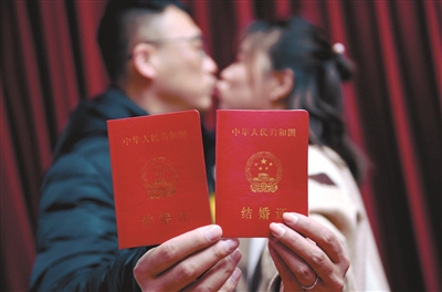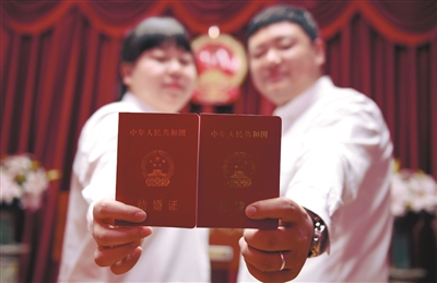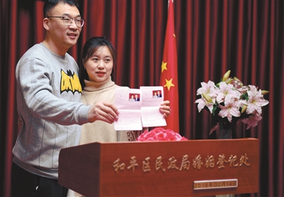 記者通過采訪了解到,昨天登記的新人中,總體上看,90后成為領(lǐng)證登記的“主力軍”,其中還有一些95后新人。