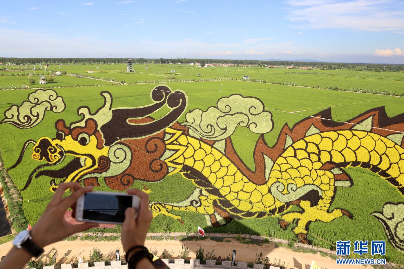 7月24日,一位游客在拍攝稻田畫《見龍在田》。新華網(wǎng) 姜冰攝 -