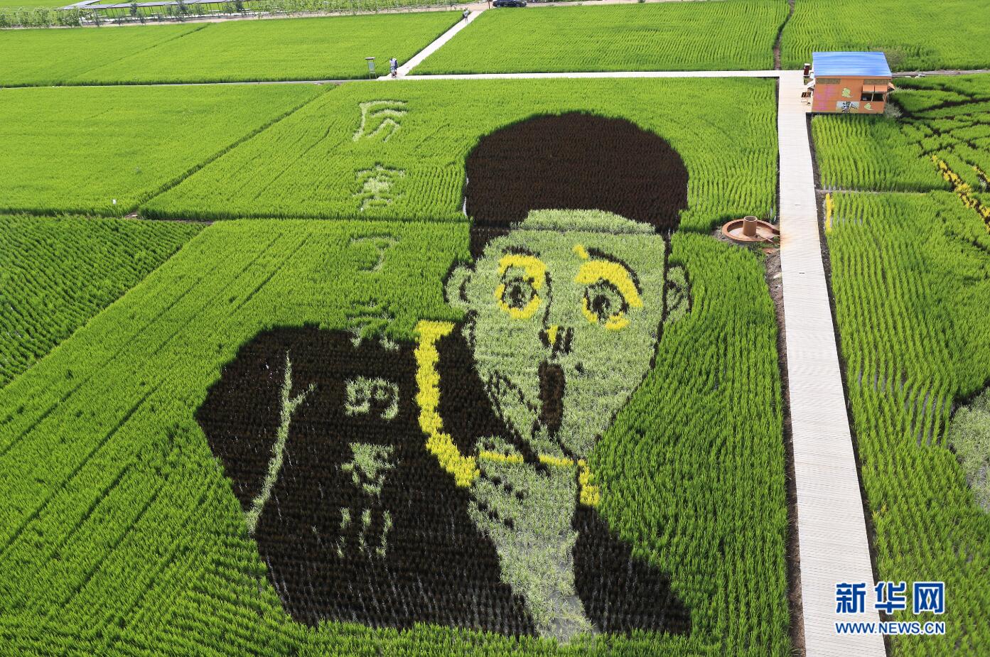 7月24日在沈陽市興隆臺錫伯族鎮(zhèn)稻夢空間園內(nèi)拍攝的稻田畫《美容大米》。 新華網(wǎng) 姜冰攝 -