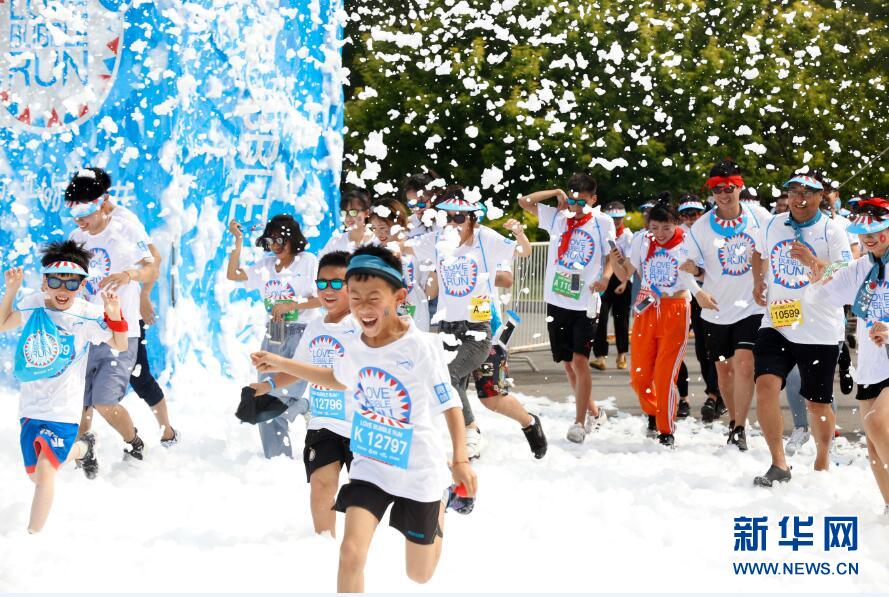 圖為年輕人參與“泡泡跑”激情四射。新華網(wǎng) 姜冰攝 -