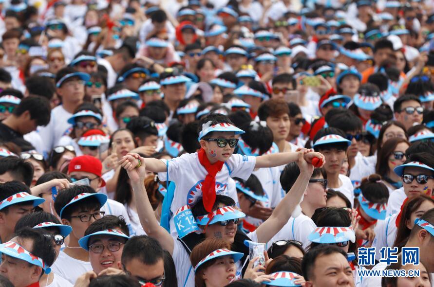 圖為市民穿著統(tǒng)一的服裝,戴著一樣的帽子來(lái)到沈陽(yáng)奧體中心積極參加“泡泡跑”活動(dòng)。新華網(wǎng) 姜冰攝 -