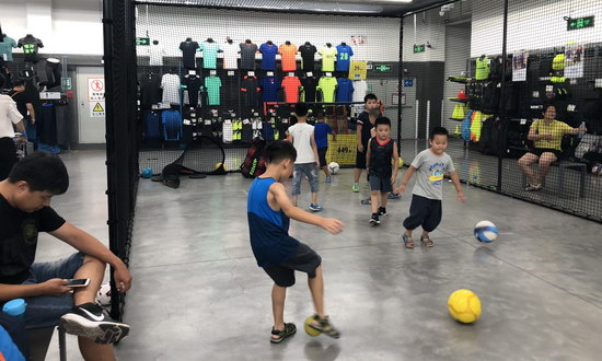 連續(xù)高溫下,去商場免費(fèi)“蹭”空調(diào)成了很多市民的選擇。晚上7點(diǎn)多,氣溫仍然顯示33℃,田先生夫婦帶著孩子到渾南區(qū)一家體育用品商場逛逛?吹降纳虉龈袷且粋(gè)室內(nèi)兒童活動(dòng)中心——不少小朋友在試騎滑板車、平衡車、踢球,家長們推著嬰兒車,拎著水壺零食。
