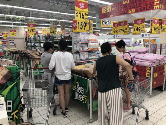 隨著夏日高溫的持續(xù),沈陽多家超市針對(duì)高溫天氣開展了“打折”、“贈(zèng)送”等促銷,將涼席、清涼夏裝、防曬產(chǎn)品等當(dāng)季熱賣商品放在顯眼位置,吸引消費(fèi)者的注意。