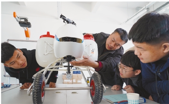 3月18日,遼寧農(nóng)業(yè)職業(yè)技術(shù)學(xué)院農(nóng)業(yè)裝備工程系2018級(jí)無人機(jī)班的學(xué)生正在進(jìn)行無人機(jī)噴灑農(nóng)藥操作的學(xué)習(xí)。近年來,隨著我國農(nóng)業(yè)現(xiàn)代化水平的提高,植保無人機(jī)市場快速發(fā)展,這讓植保無人機(jī)“飛手”成為熱門職業(yè),“科班”畢業(yè)的“飛手”備受市場青睞。本報(bào)記者周福剛 攝